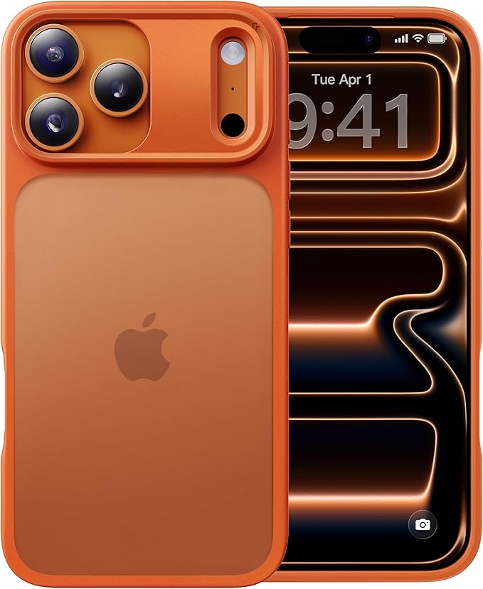 【米軍MIL規格・指紋防止】CASEKOO iPhone 17 Pro Max 用 ケース 耐衝撃 滑り止め 指紋防止 米軍MIL規格 マット仕上げ ストラップホール付き カバー ワイヤレス充電対応 アイフォン 17 プロマックス 用 6.9 インチ(オレンジ)