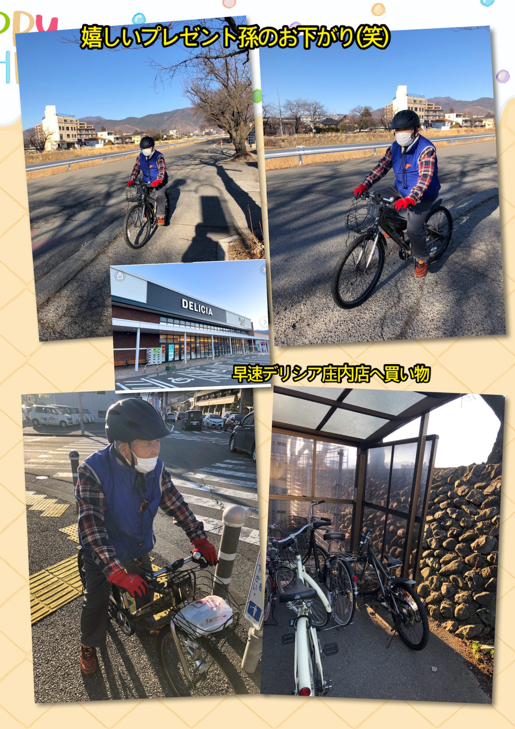 未分類 自転車息子からのプレゼント 2026年2月23日 大淀の芋太郎 2件のコメント 令和8年2月22日(日)息子からのプレゼント欲しかった自転車 有り難う此で 行動半径は広がる、ぼけ防止にも成る、膝の対策にも成る、 筋肉にもいい楽しさも増えました・・・ ただ事故だけには注意だね。ほんとに良いプレゼントしてもらったよ。 小学生の頃に乗っていた孫スイカちゃんのお下がりだけどバッチリだよ(^_-)-☆ 私も胴長で足が短く背も5センチちぢまっているので丁度よい(笑) created by photogrid