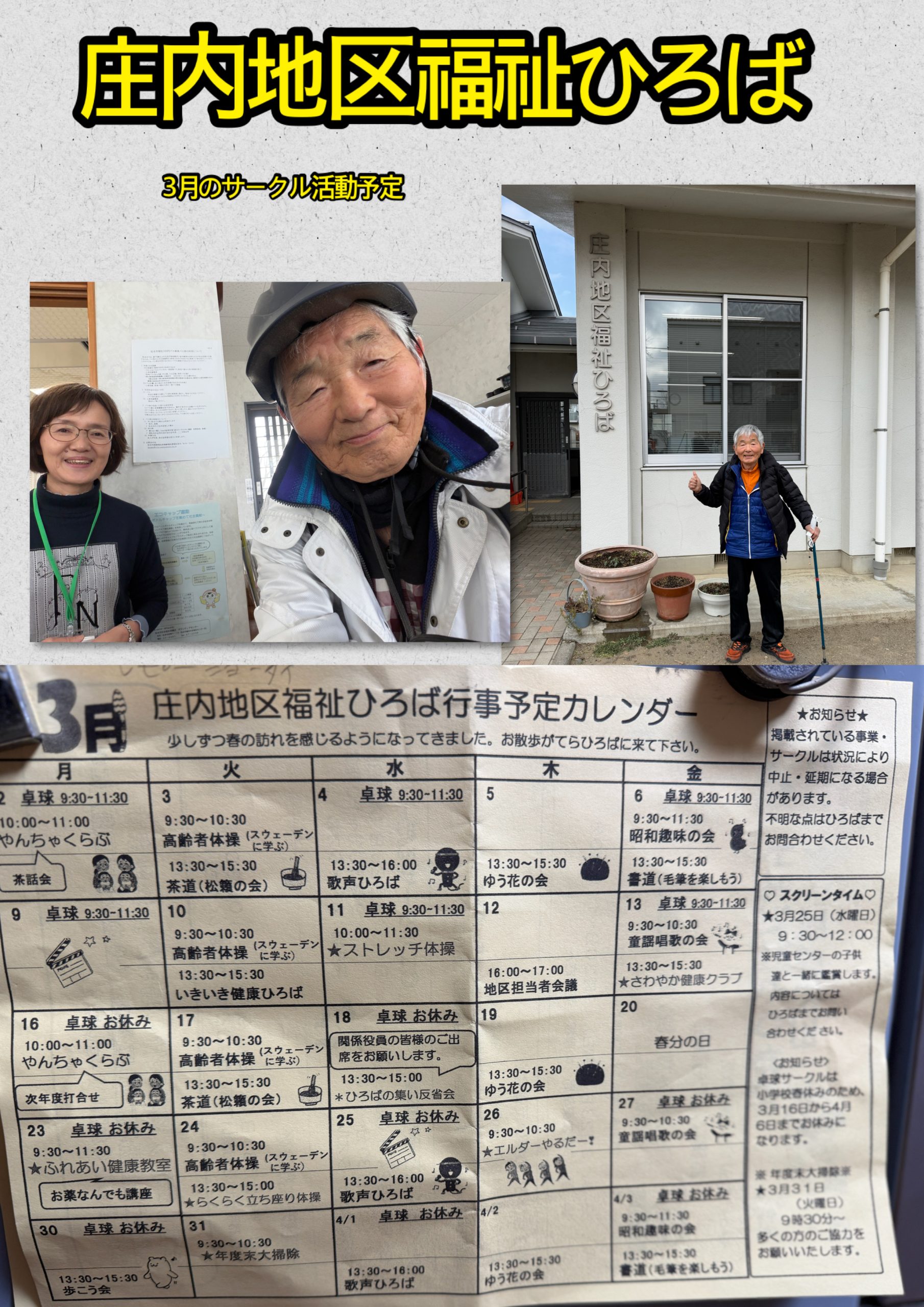 未分類 3月の活動予定(サークル) 2026年2月28日 大淀の芋太郎 コメントする 福祉広場が自転車で5分ほど近い距離にあり、とてもうれしい。卓球というかの他はほとんど用事がない限り参加している。もうすっかり顔なじみになりました。 下図は包括支援センターの福祉広場担当者のHさんとのツーショット created by photogrid