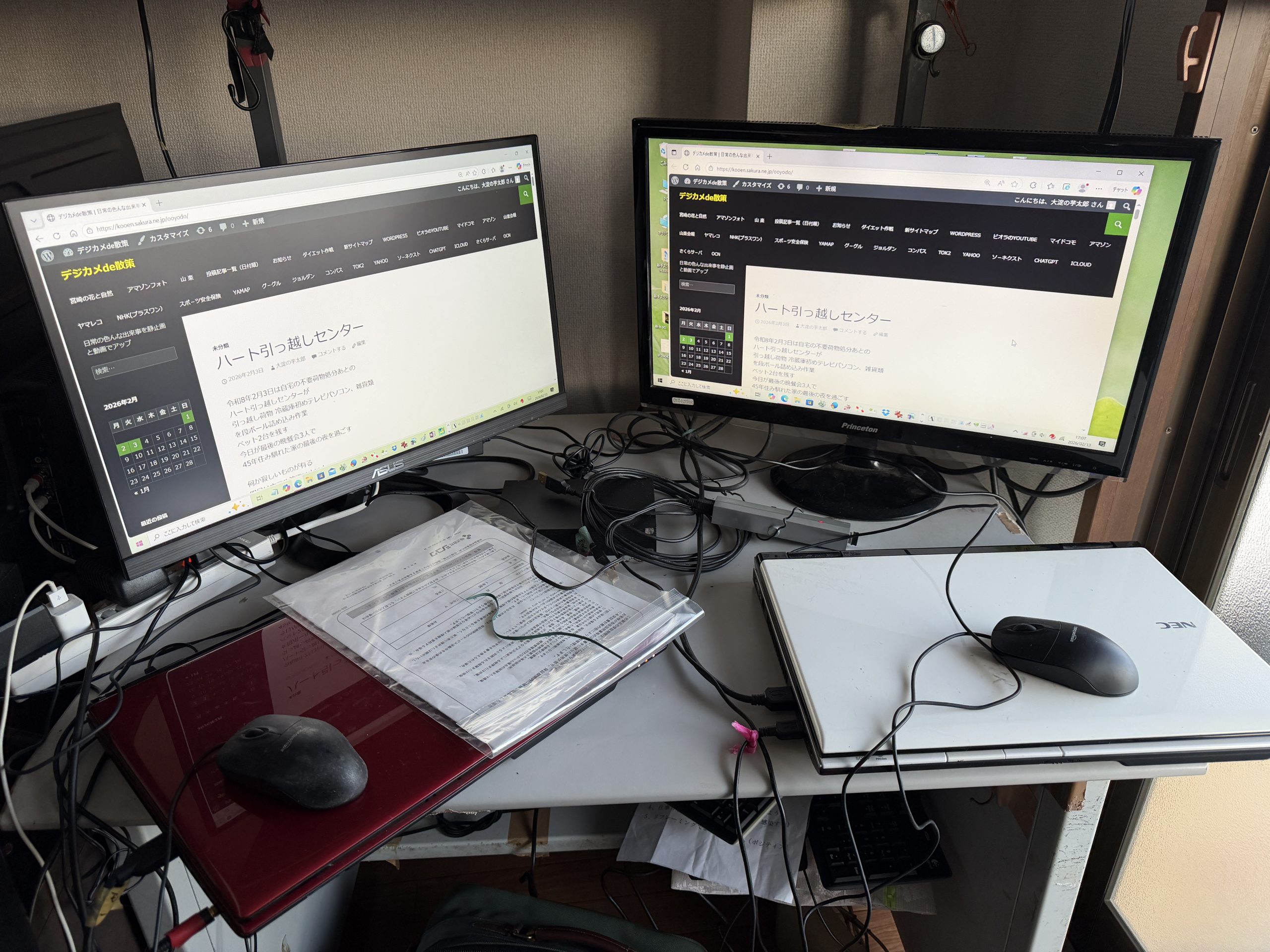 これで目標のひとつだった無線だけの2台パソコンを並べてのオフイスkazuスタ-トし何故かワクワク((o(゜▽゜○)(○゜▽゜)o))ドキドキする。