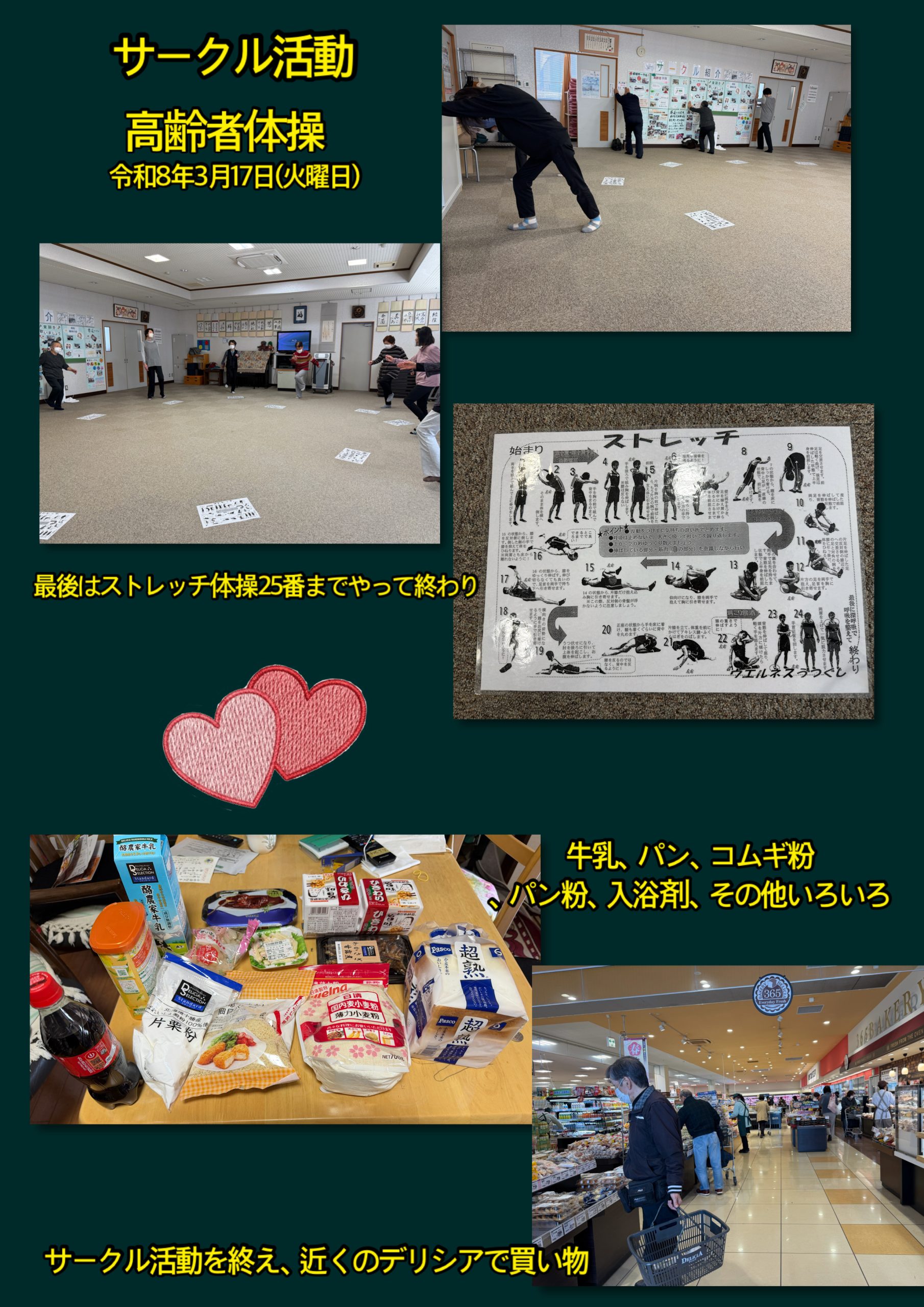 令和8年3月17日火曜日9時半から10時半まではサークル活動。